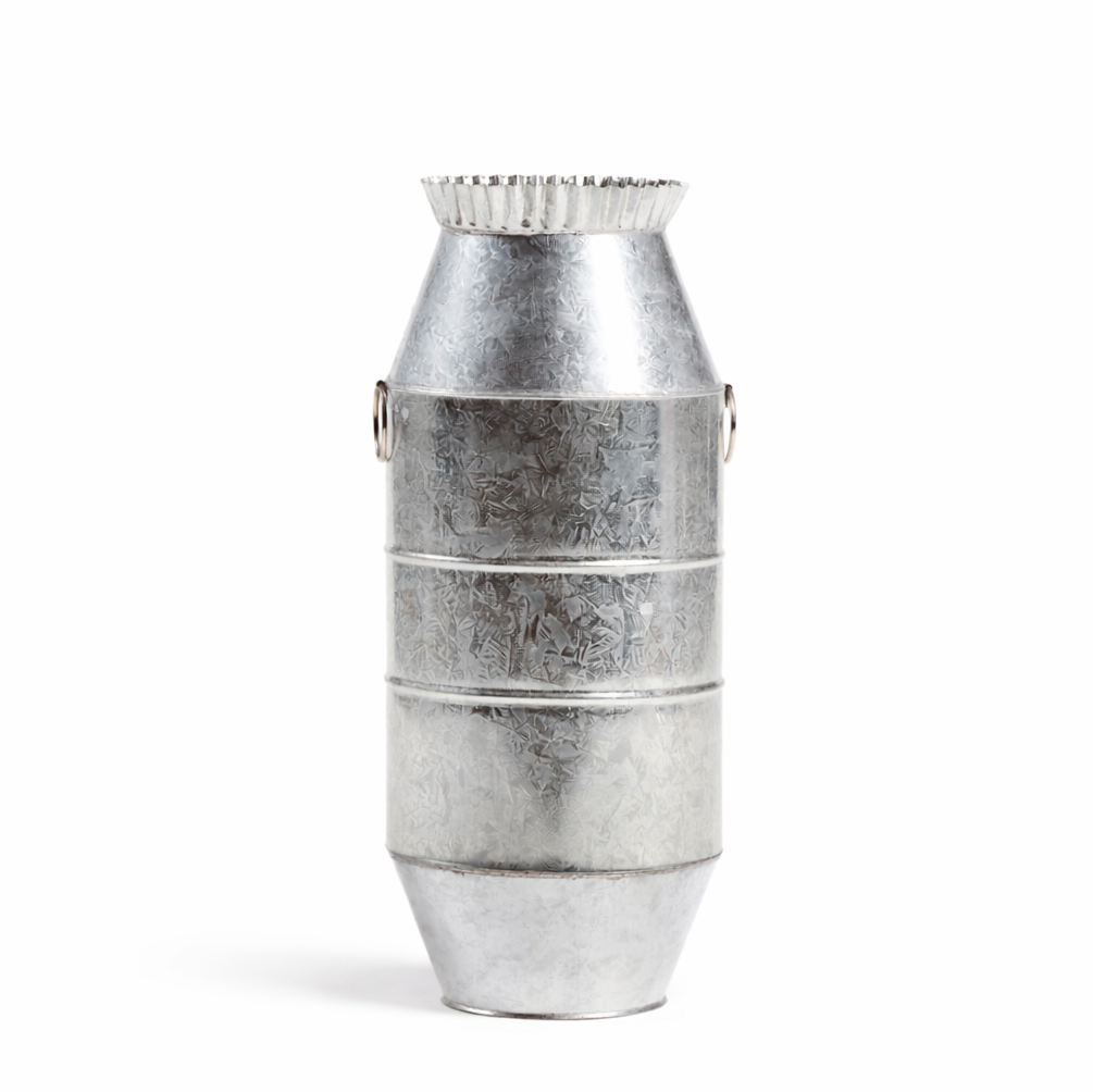 La colección "Objetos de Hojalata" de Fabien Cappello celebra la artesanía mexicana al reimaginar el oficio tradicional de la hojalatería. Este florero "Greta" , fabricado con esmero en Guadalajara, México, refleja la esencia de esta técnica centenaria, combinando láminas de metal galvanizado con un diseño funcional para el hogar moderno.